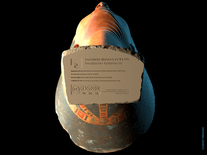 Esto nos devuelve directo a la cuestión del busto de Nefertiti, y a las preguntas que todavía circulan alrededor de lo apropiado o no que resulta su digitalización. Peor aún, que las condiciones de acceso a esa digitalización sean las que describe Cosmo Wenman en su historia.
